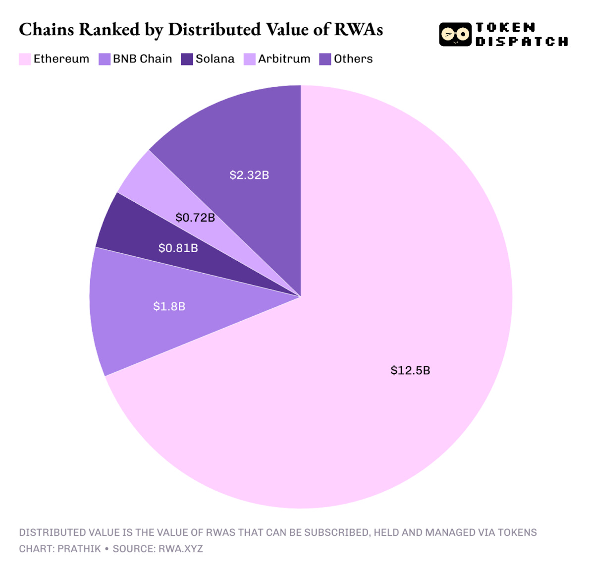 Ethereum still accounts for the majority of “distributed” tokenised asset value at the time of writing. This means that more than half of the tokens that allow their holders to buy, manage, and hold their tokenised RWAs were issued on the Ethereum chain.