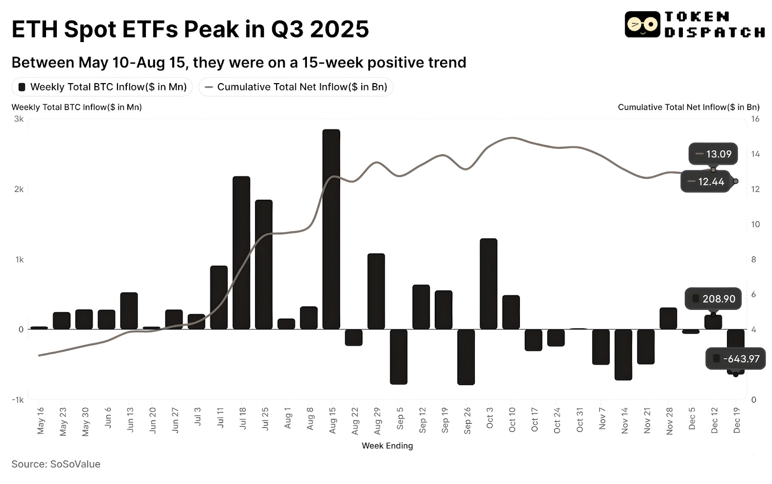 Between June 1, 2025, and September 30, 2025, cumulative inflows into ETH ETFs had turned almost fivefold, surpassing $10 billion.