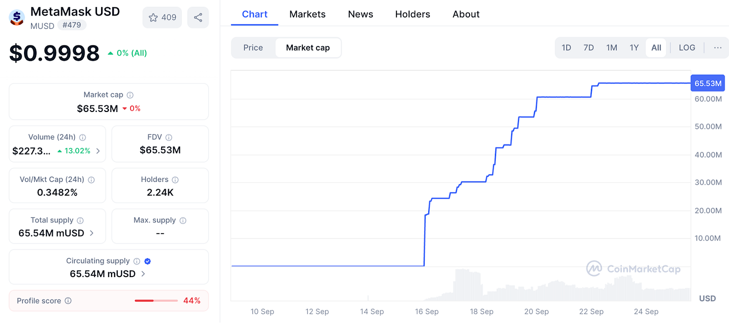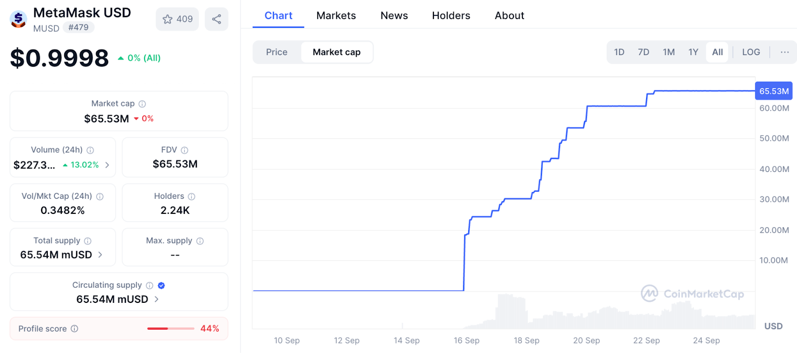 MetaMaskās mUSD market cap grew from $25 million to $65 million in under a week. Nearly 90% of it resides on Linea, ConsenSysās in-house Layer 2, showing that MetaMaskās interface can direct liquidity effectively. This kind of leverage is similar to what exchanges have used in the past: when Binance auto-converted deposits into BUSD in 2022, circulation spiked overnight. Whoever controls the screen controls the coin. With over 30 million monthly active users, MetaMask has more screens than anyone else in the Web3 space.
