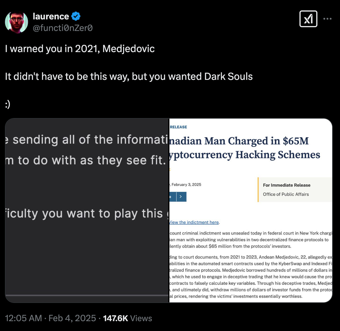 Perhaps most ironically, Medjedovic's legacy might be exactly what he didn't intend: strengthening the case for more robust regulation in the crypto space, and forcing us to ask ourselves a crucial question: Are we creating an environment that channels brilliant minds toward meaningful innovation, or are we just building ever more elaborate puzzles for them to break?
