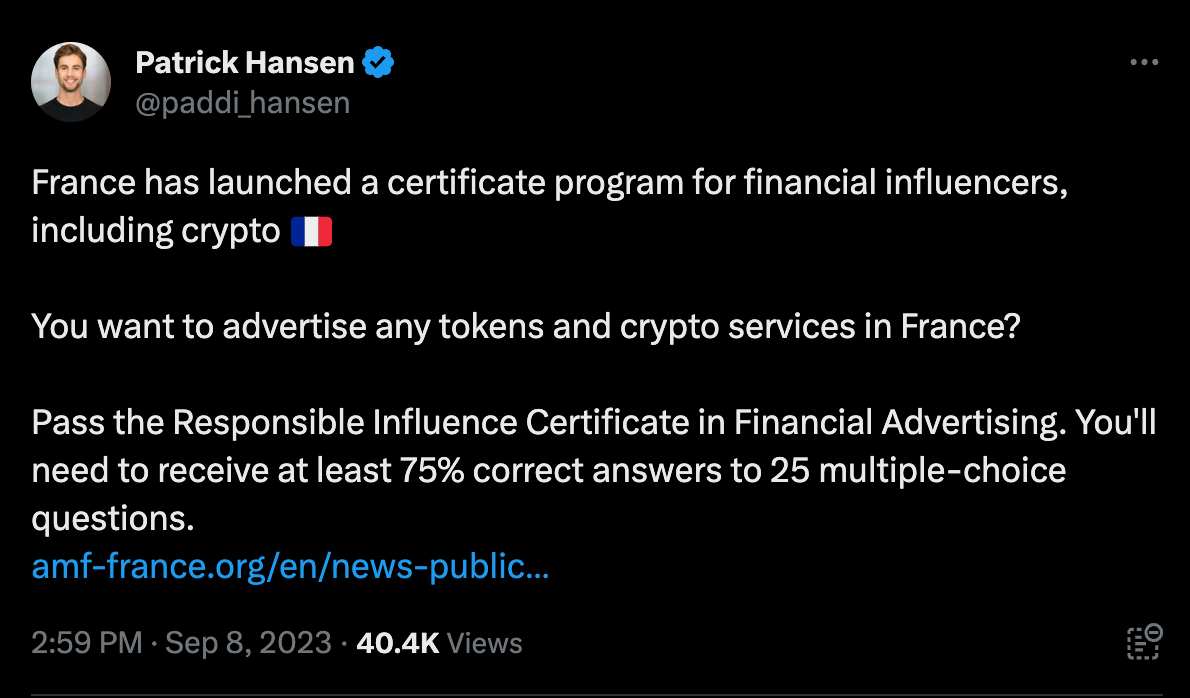 France is prioritising transparency and investor protection by launching a specialised training program for crypto and finance influencers.