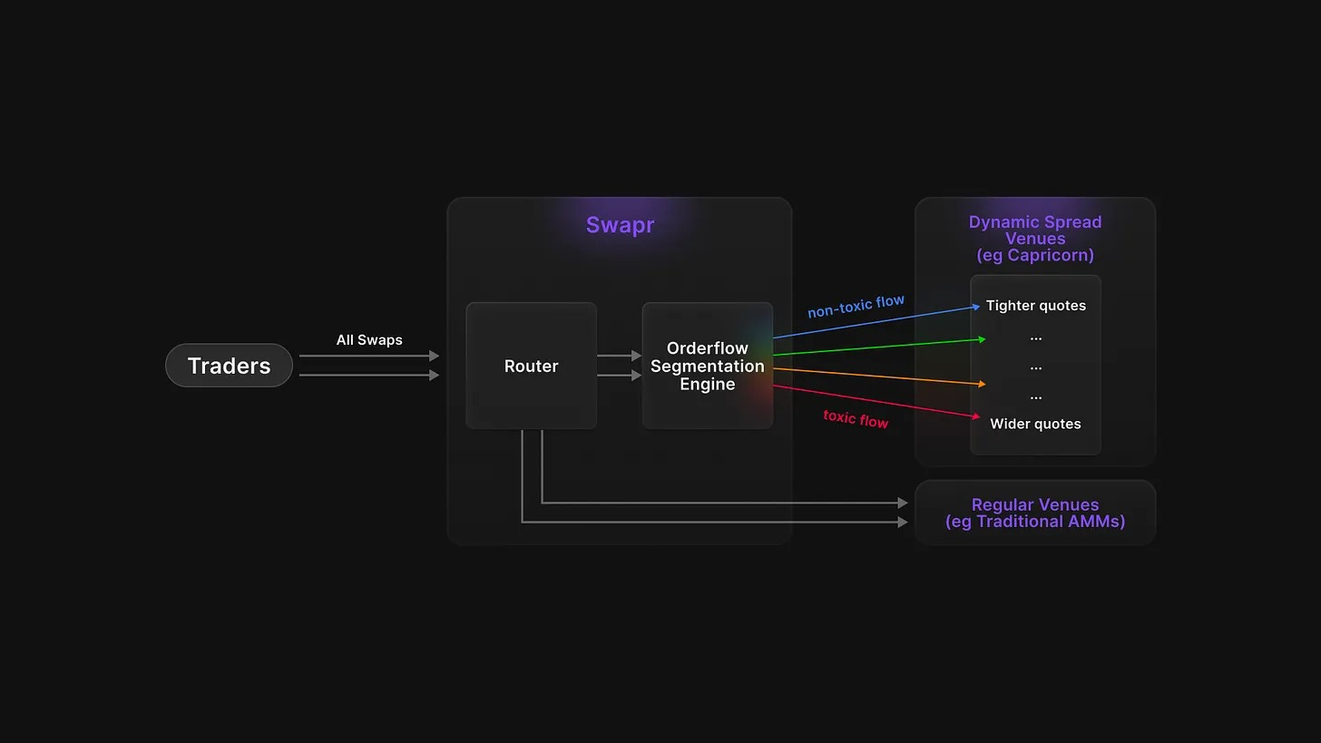 Meanwhile, aPriori’s Order Flow Segmentation Engine continuously analyses transactions across Ethereum, BNB Chain, and Monad. It classifies trades based on wallet behavior, transaction patterns, and flow quality. “Toxic” flow (trades likely to be profitable arbitrage or informed trading) gets routed to venues that can absorb it. “Clean” retail flow is sent to liquidity pools offering tighter spreads.