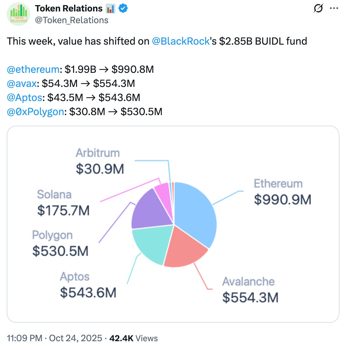 Ching started signing those partnerships. BlackRock brought its BUIDL fund to Aptos, contributing $500 million in tokenised assets. Franklin Templeton launched tokenised money market funds on the platform. Apollo began exploring tokenised credit products.