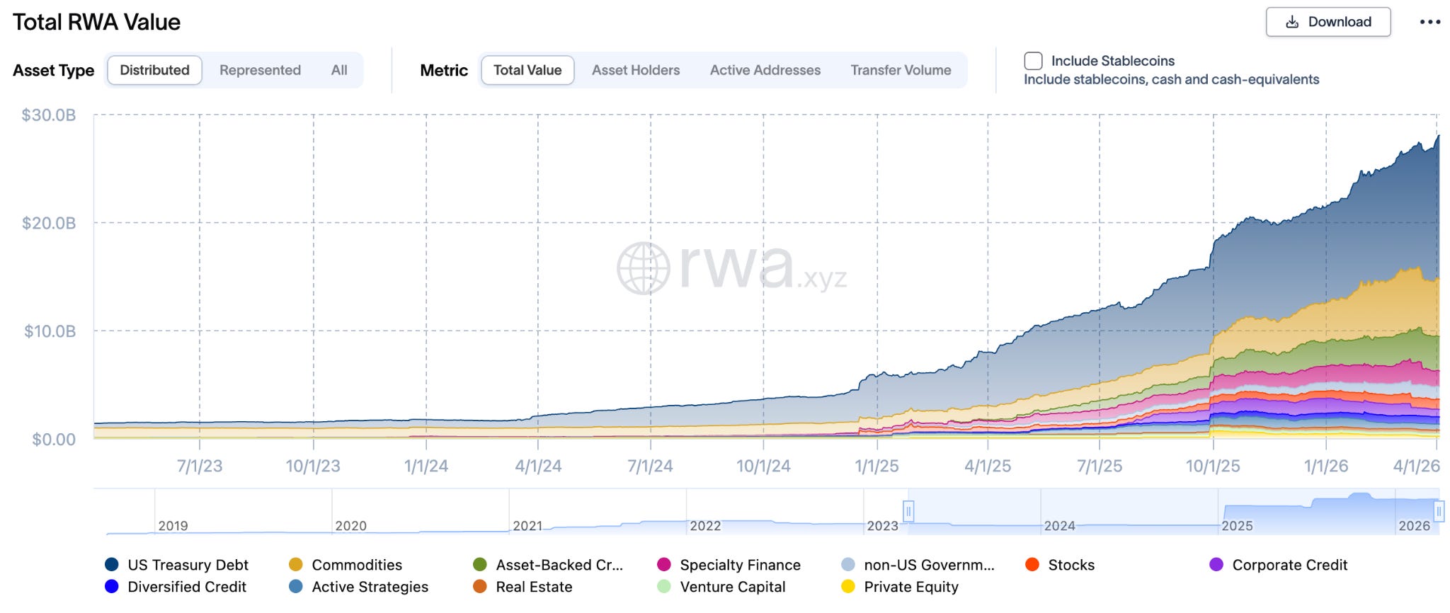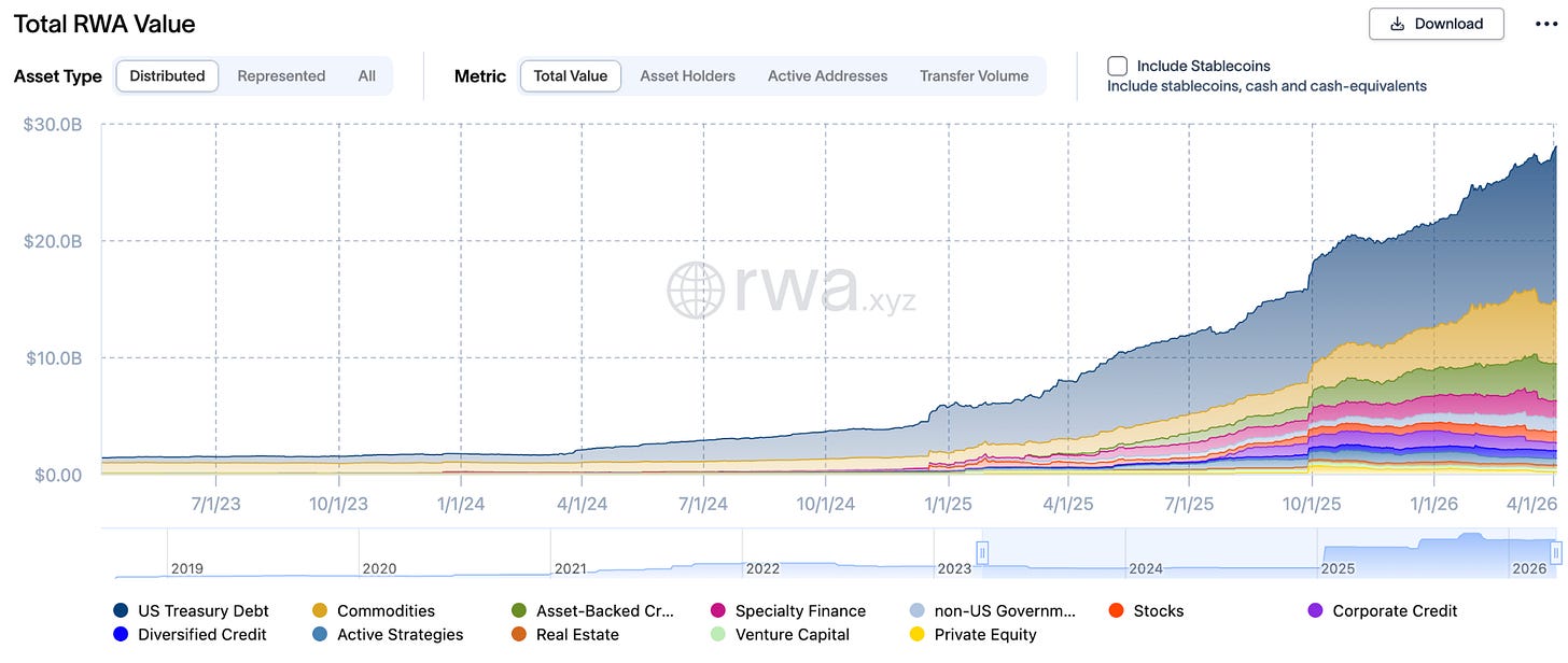 By converting U.S. Treasuries and other real-world assets (RWAs) into on-chain tokens, institutions can move them 24/7 and settle them atomically. The growth of this market has been rapid; as of April 1, 2026, the tokenised RWA market reached approximately $28 billion, with tokenised Treasuries accounting for roughly half of that total. This surge is driven by institutional-grade products such as BlackRock’s BUIDL and Franklin Templeton’s BENJI, which allow holders to earn a 5% yield on underlying government securities while the tokens themselves remain mobile and deployable.