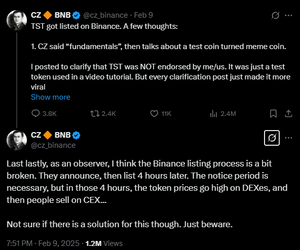 The move follows pointed criticism from Binance's founder Changpeng Zhao, who recently called the exchange's listing process "broken" after a test token that accidentally featured in a tutorial video reached a staggering $489 million market cap despite his warnings not to buy it.