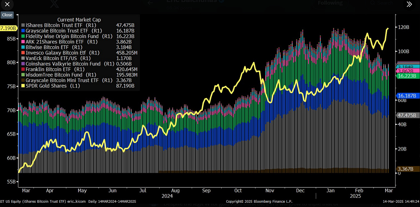 Its struggle to defend its “digital gold” reputation from the storm of recession fears and Trump's tariff tantrums has finally given way. Gold - the good old physical one - has flipped crypto's flagship and reclaimed the ETF crown.