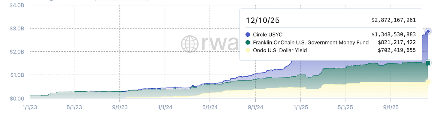 However, this is still a competitive market. Franklin Templeton sits at $820 million and USYC at $1.35 billion TVL, compared to $700 million for USDY. While a competitive product, the moat seems to be missing.