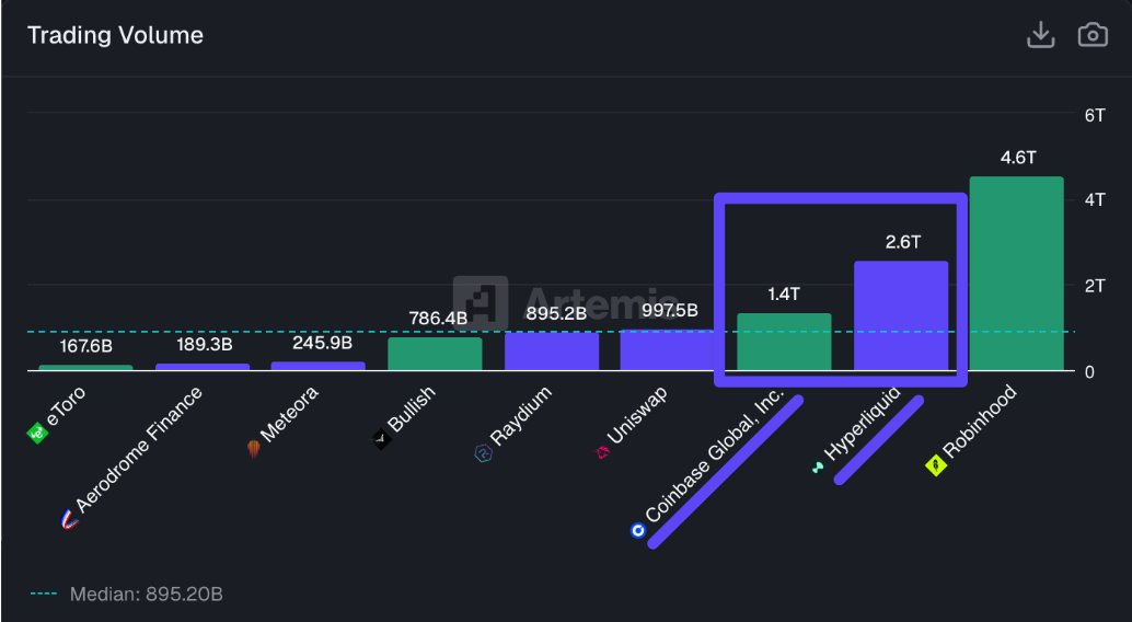 Last month, Hyperliquid processed $2.6 trillion in notional trading volume, almost twice what Coinbase handled.