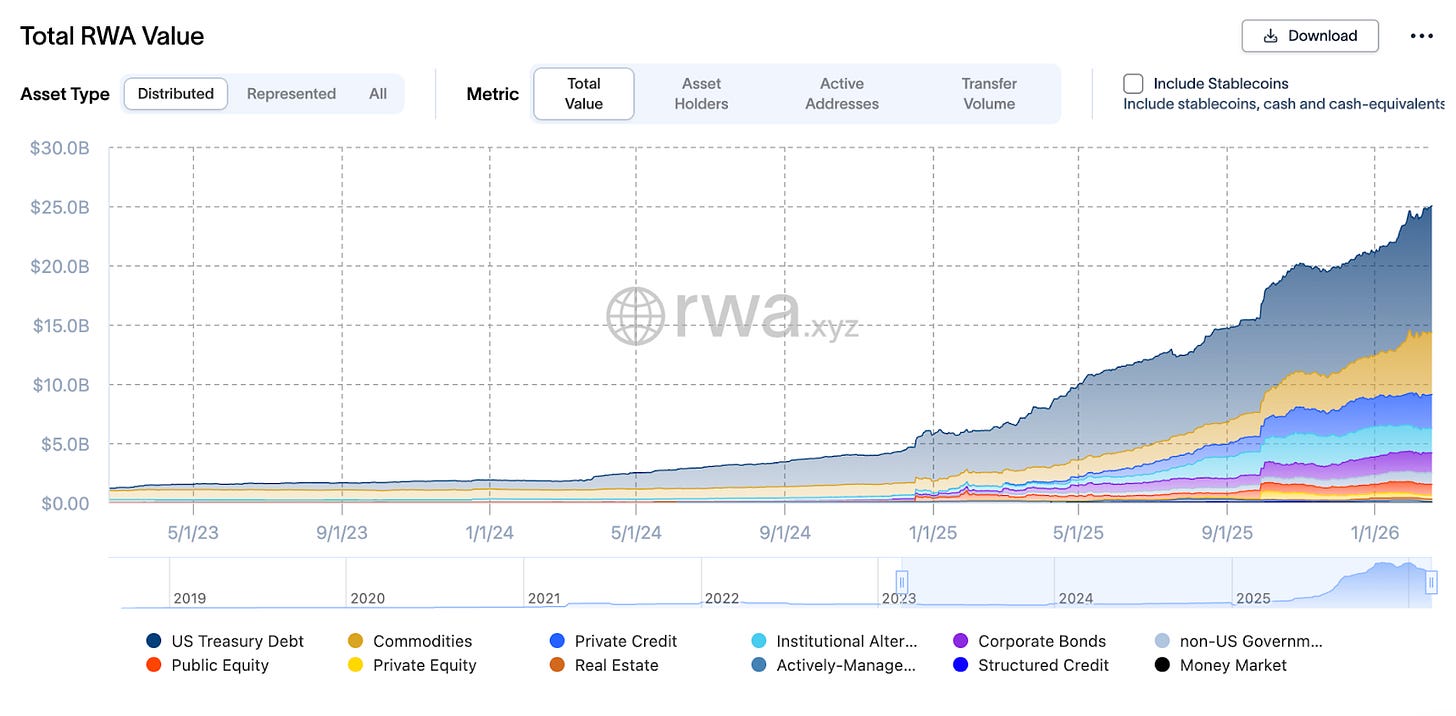 Tokenised real-world assets on public blockchains have approached $20 billion. Tokenised U.S. Treasuries alone crossed $10 billion in January this year, growing tenfold in under two years and tokenised gold has surpassed $6 billion.