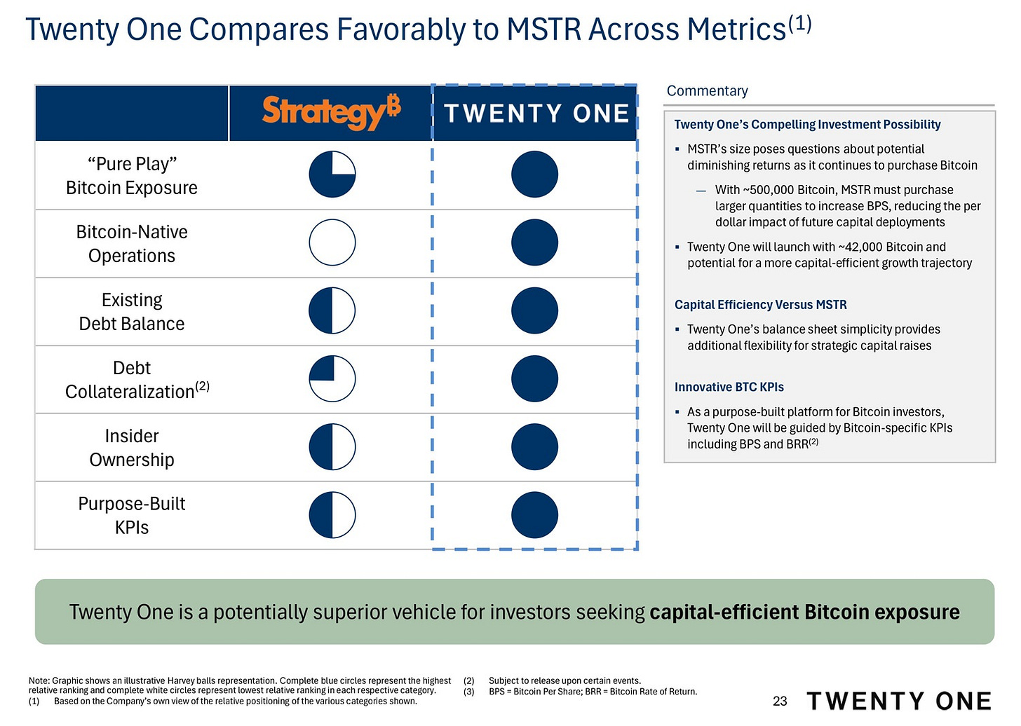 It would be an error to mistake Twenty One to be copying Strategy's playbook. In fact, it’s doubling down and going all in on Bitcoin.