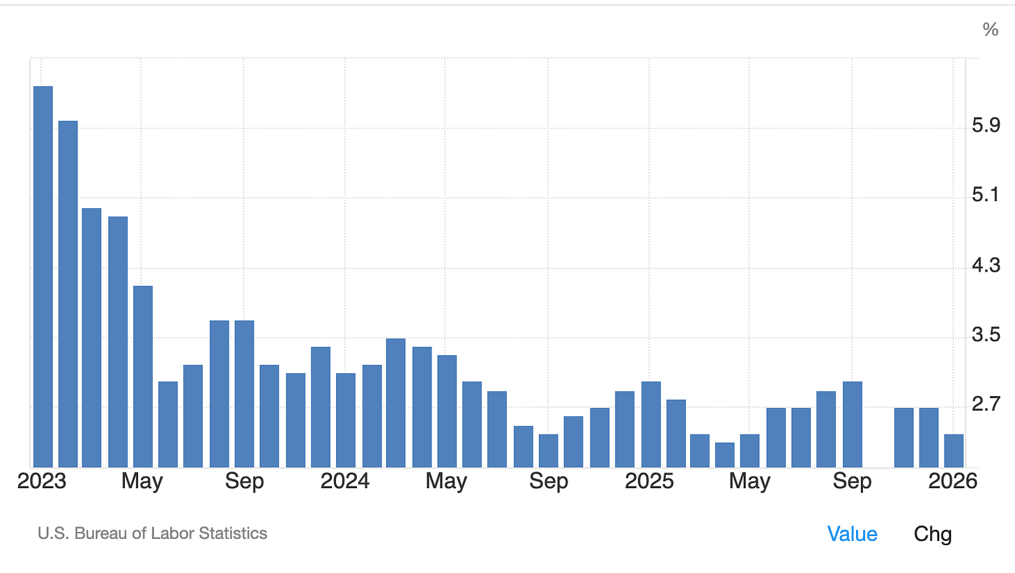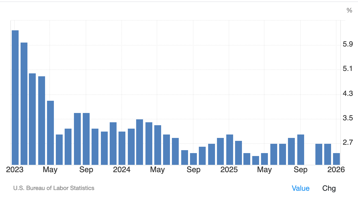 US inflation just came in at 2.4% for January 2026, the lowest since May, and a genuine improvement from where we were two years ago. One paper sounds manageable. In practice, the Fed has been above its 2% target for nearly five years. Five years of your cash losing a race it was never designed to win. At 2.4% annual inflation, a dollar loses about 11% of its purchasing power over five years. Dramatic, but not really, it’s just persistent.
