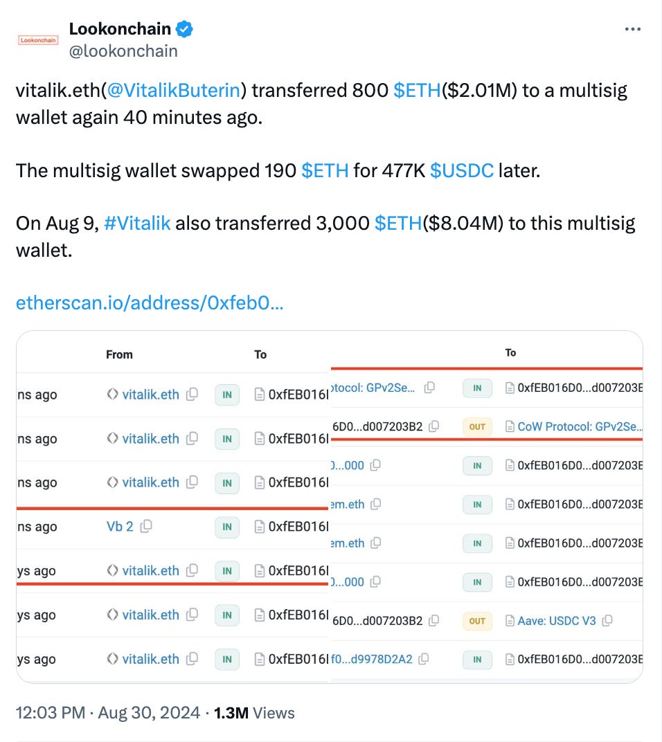 On chain analytics firm Lookonchain added fuel to the fire by suggesting that a wallet address linked to Buterin had received 3,000 ETH on August 9.