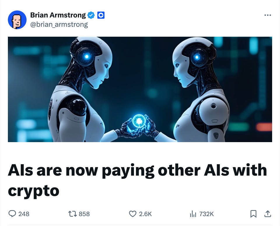 They can acquire crypto wallets, allowing them to use USDC on Base for transactions with humans, merchants, or other AIs.