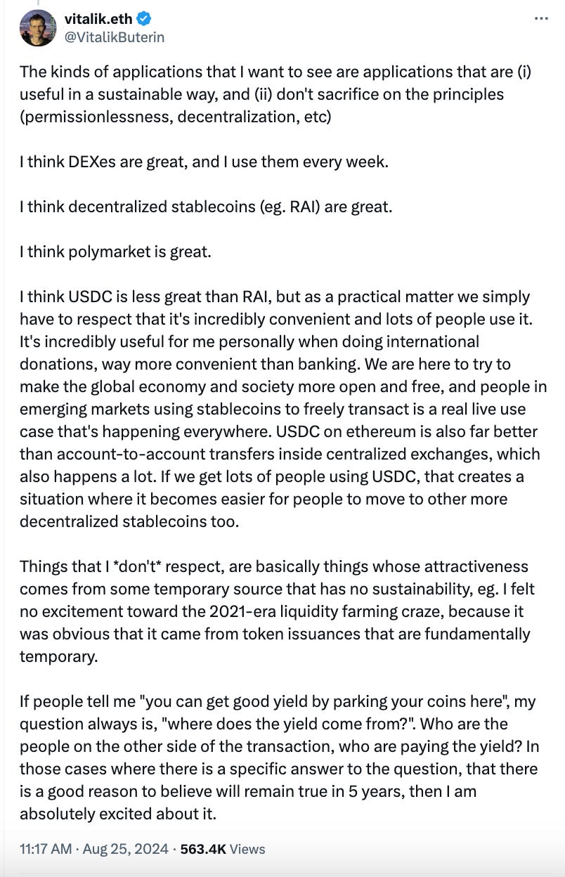 Ethereum's stance on DeFi and Buterin's vision for Ethereum: Buterin recently defended Ethereum against claims that the blockchain "doesn't care" about decentralised finance (DeFi).