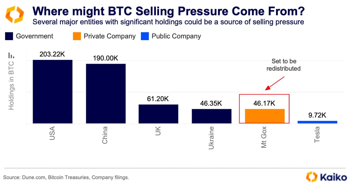 Potential Bitcoin selling pressure from Mt. Gox and the US government.