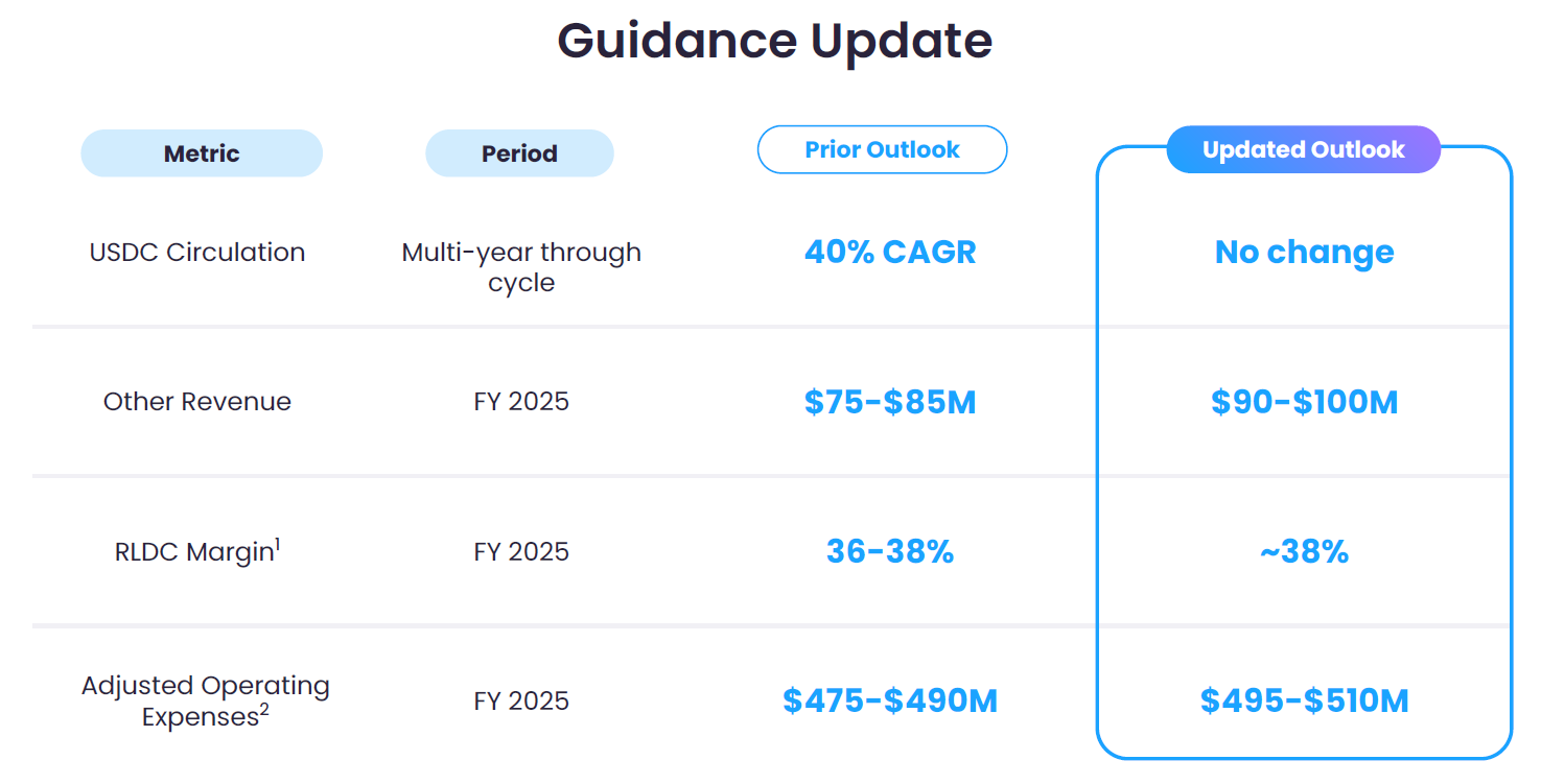 Neither CPN nor Arc is wholly operational yet. Building bank-grade corridors across countries in various continents is expensive and slow. The funding for this expansion could partly explain why Circle has raised its guidance for adjusted operating expenses for FY 2025 from $475-$490 million to $495-$510 million.