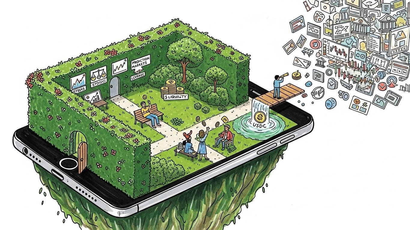 Stock trading means users can now react to Apple earnings at midnight using USDC without leaving the app. Prediction markets mean they’re checking prices on “Will the Fed cut rates?” during lunch. Perpetual futures mean they can lever up their Tesla position by 50x on a Sunday. Each new surface is another reason to open the app, another opportunity to capture a spread, a fee, or some stablecoin interest on idle balances.