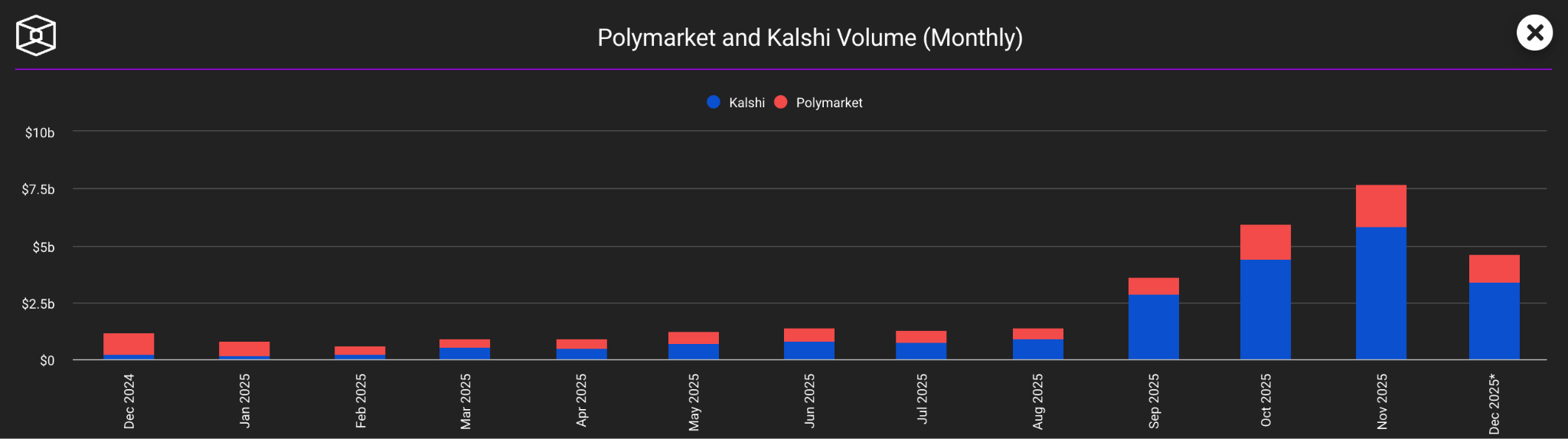 The contracts disappear after they settle, so there’s no long-term holder base. The liquidity is event-driven, which means it’s spiky and unpredictable. And yet platforms like Kalshi and Polymarket saw monthly volumes spike to more than $7 billion in November.