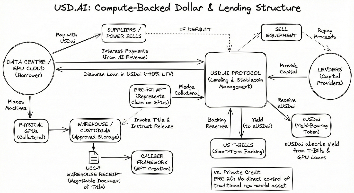 Data centre operators and GPU clouds can apply for loans in USDai. To do this, they work with a specialist underwriter, place their machines into a bankruptcy-remote vehicle, and store them with an approved custodian.