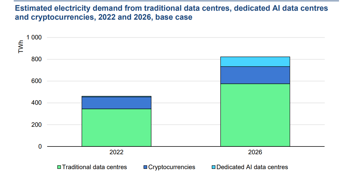 By 2026, the power use from data centres, AI, and crypto could leap up to between 620 and 1050 terawatt-hours (TWh).