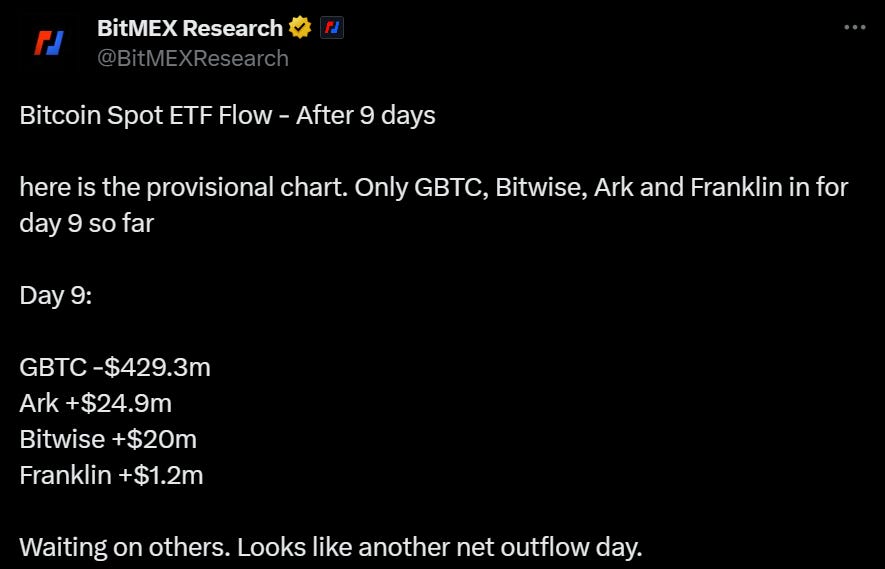 This comes after a significant amount of profit-taking in the Grayscale Bitcoin Trust (GBTC), which has converted into a spot Bitcoin ETF.