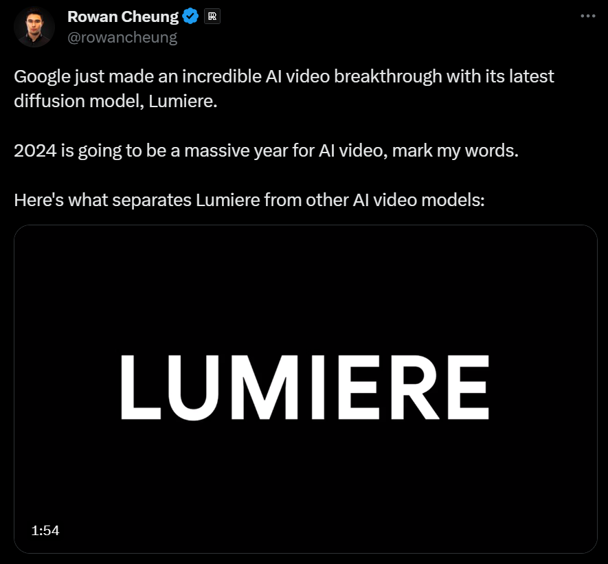 Google's latest brainchild, named Lumiere, is a text-to-video generator.