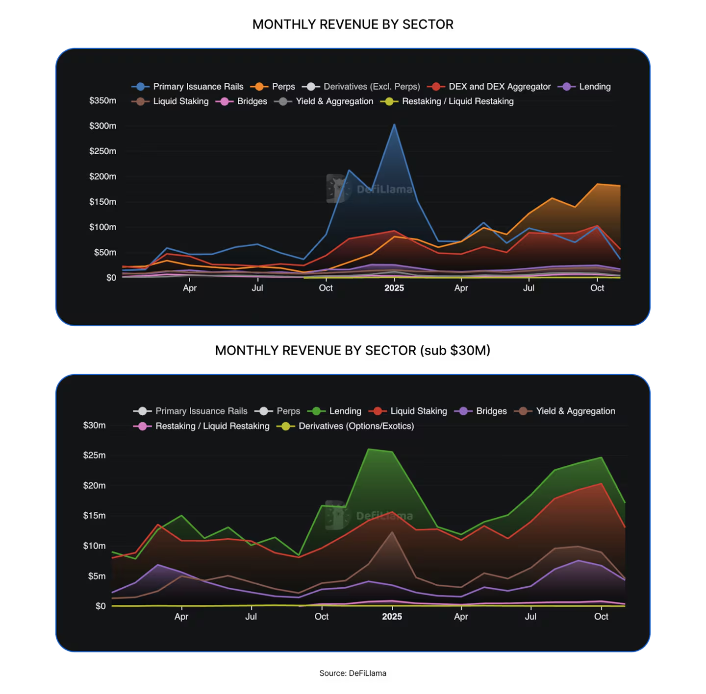 This is precisely why I find perps DEXs, despite having single-digit revenue dominance last year, to be the only category that could even remotely challenge stablecoin issuers’ dominance.