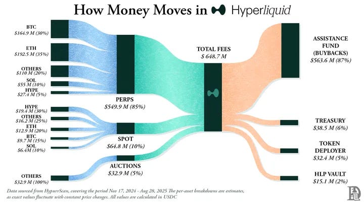 Hyperliquid built a culture around routing about 90% of its revenue back to its users via its Hyperliquid Assistance Fund.