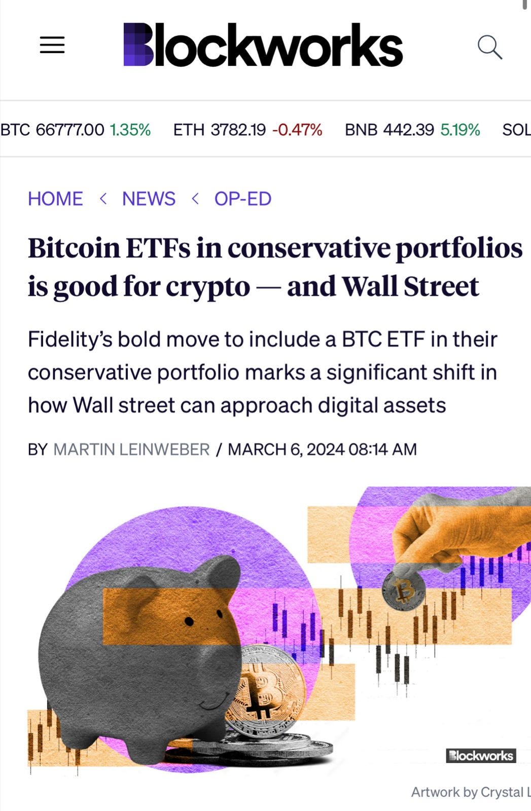 Fidelity Canada's decision to include a bitcoin ETF in their conservative portfolio is a significant shift for Wall Street and the crypto industry👇