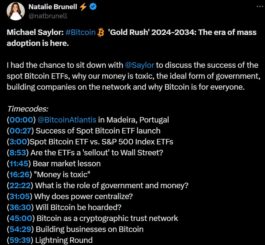 Saylor sees ETFs as a "universal API" for easy Bitcoin access, potentially allowing features like mortgage down payments using ETF shares.