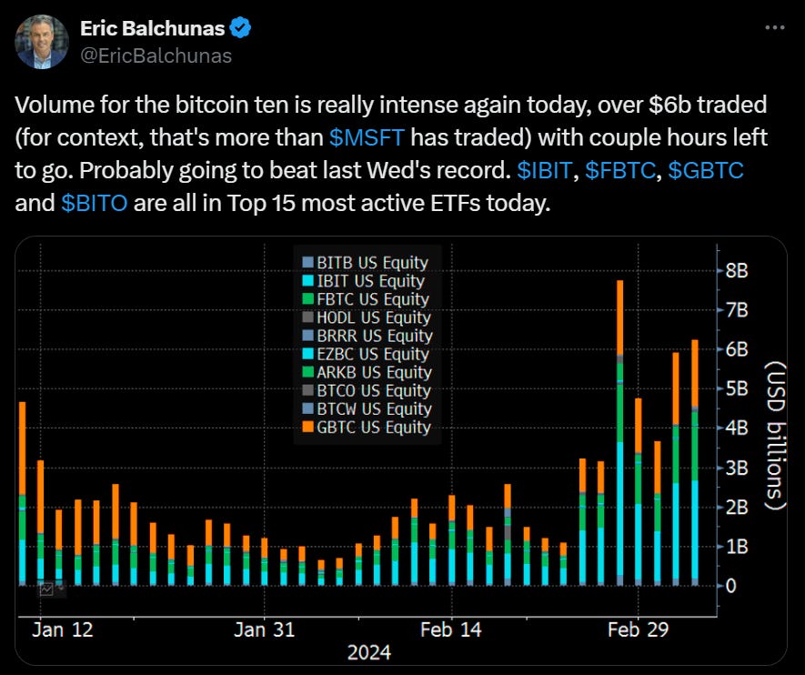 The trading volume reaching $2.85 billion on March 5, new single-day high.