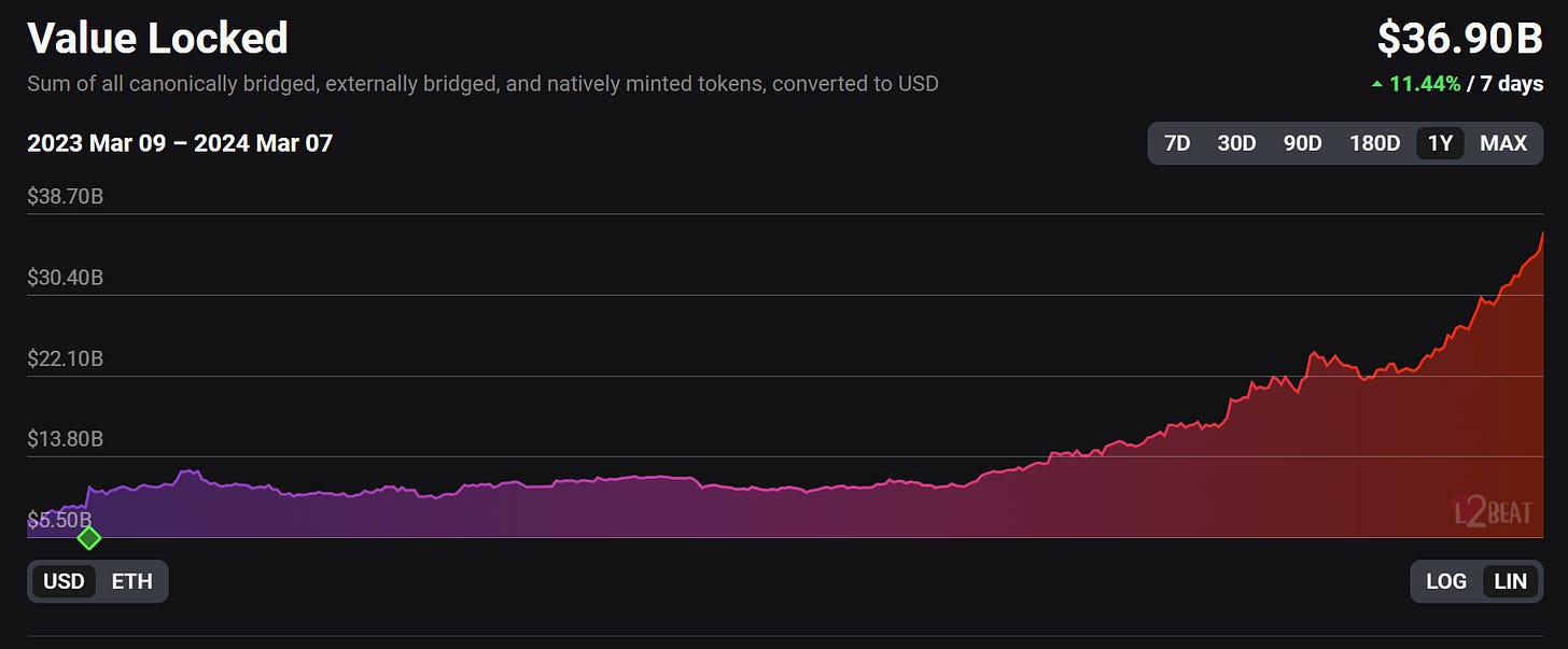 44 L2s are currently battling for dominance on Ethereum, holding a combined value of $36 billion.
