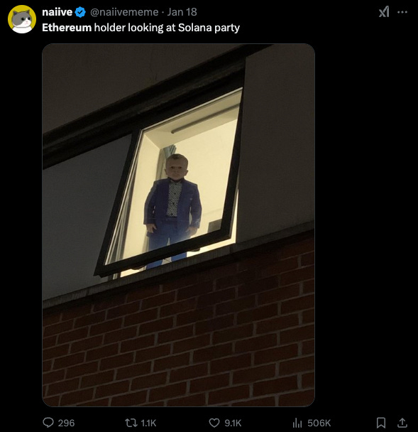 The Cost of Principle: Ethereum's commitment to staying above the political fray made sense in crypto's early days. Now, as Trump launches memecoins on Solana and XRP's leadership dines at Mar-a-Lago, this principled stance comes with a clear cost: declining market share and developer mindshare. The numbers - 38% drop in activity, falling out of top 5 in fees - tell a story of principles meeting market reality.