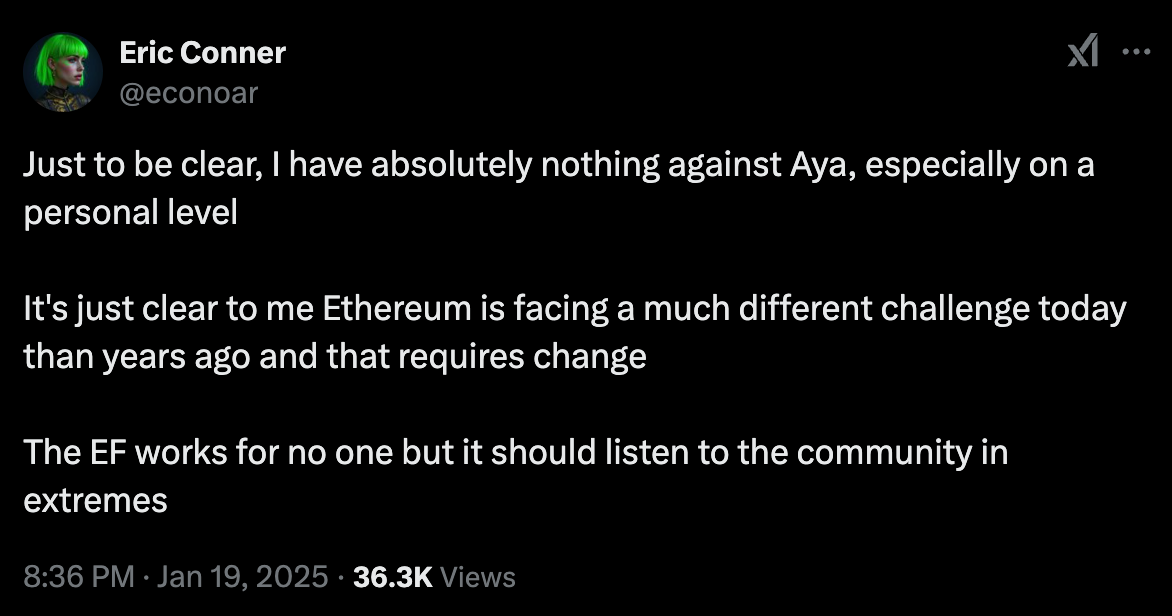 Ethereum co-founder and ConsenSys CEO Joseph Lubin proposed replacing Miyaguchi with a dual leadership structure: Danny Ryan, who led the Merge, and Jerome de Tychey, president of Ethereum France.