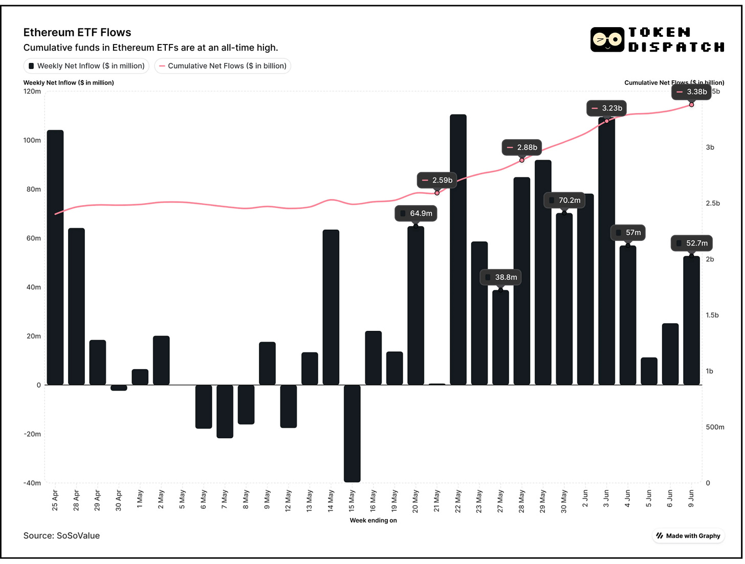 As of June 9, it recorded 16 consecutive daily sessions of net inflows — the second longest streak since its approval in July 2024.