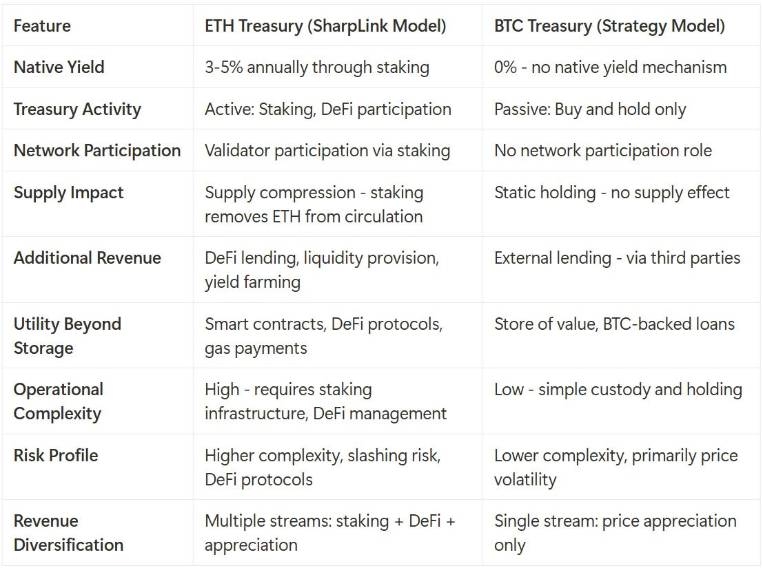 Strategy's Bitcoin holdings generate zero native yield, but SharpLink's staked ETH will earn a minimum of 2% annually, simultaneously strengthening Ethereum's consensus mechanism.