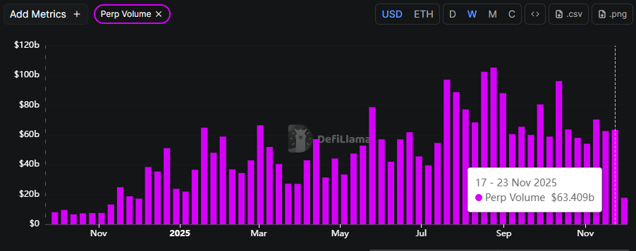 Hyperliquid’s average weekly perps volume has jumped 75% from $40 billion in the first half of 2025 to above $70 billion in the second half. It has so far recorded over $3.3 trillion in cumulative volume, cumulatively.