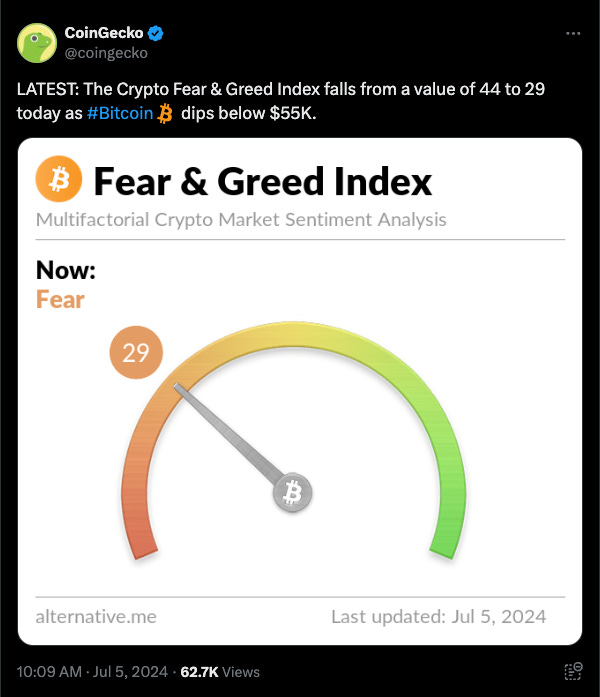 Bitcoin took a nosedive, dropping 7.85% and crashing below $55,000.