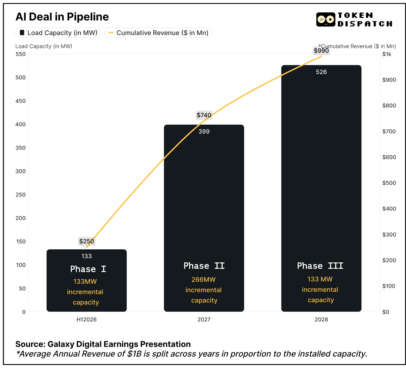 For perspective, Galaxy's entire Digital Assets business generated $71.4 million in adjusted gross profit in Q2. At full utilisation, just Phase I and II of Helios (~400MW) will likely generate quarterly revenue of $180 million with a fraction of the operational complexity and costs.