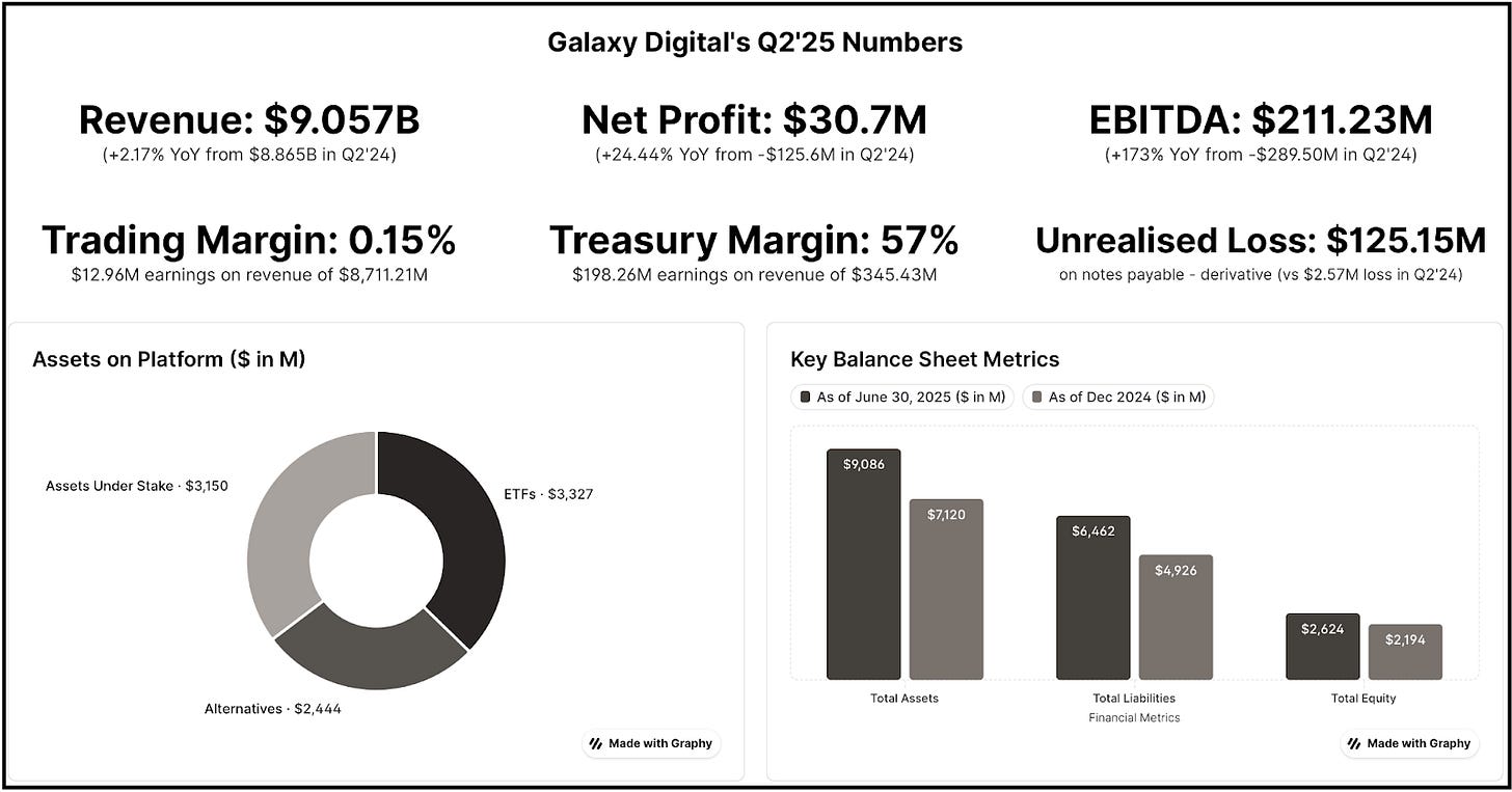 Today, we are diving deep into Galaxy Digital’s Q2 2025 earnings as the digital assets and data centre solutions provider prepares for a pivot. From its core business that generates 95% revenue with less than 1% margin, to a business model that promises a revenue-expense ratio that sounds too good to be true.