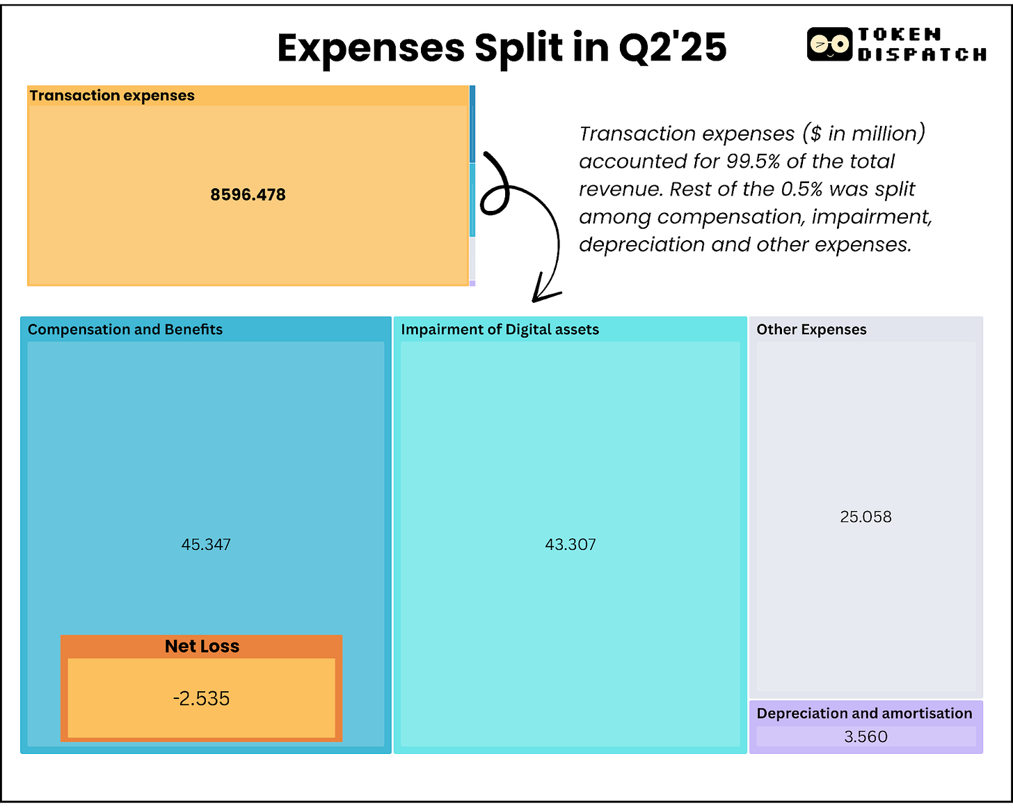 Expenses for the Digital Assets segment totalled $8.714 billion out of which transaction expenses accounted for a lion’s share ($8.596 billion). These are pure pass-through costs with minimal markup opportunity. There’s little Galaxy can do to optimise these costs since they are unavoidable in a commoditised trading business where spreads continue to compress.
