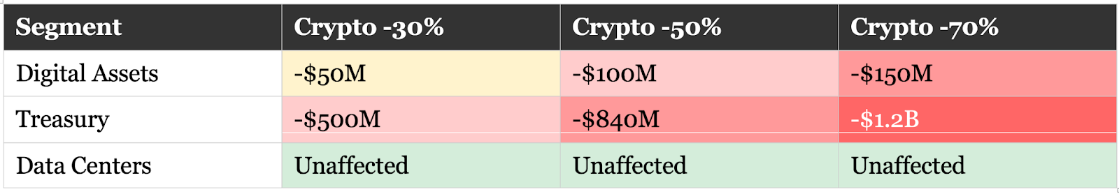 Two of three segments remain highly correlated with crypto; Data Centres may become the primary hedge beginning H2 2026
