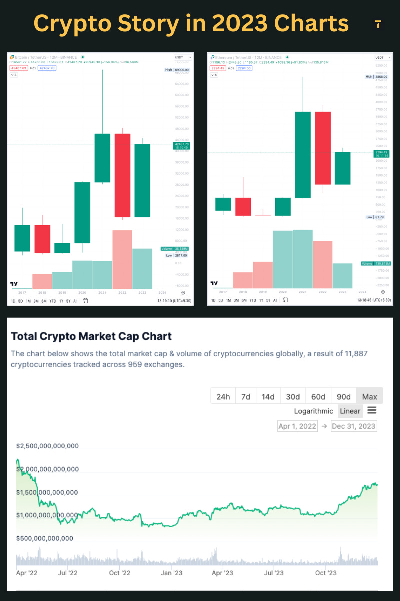 In many ways, 2023 has been a year of comeback. In many cases against the odds. For Crypto it has been no different. We are all set to bring in 2024, with renewed optimism that's bordering over confidence. This tells the story 👇