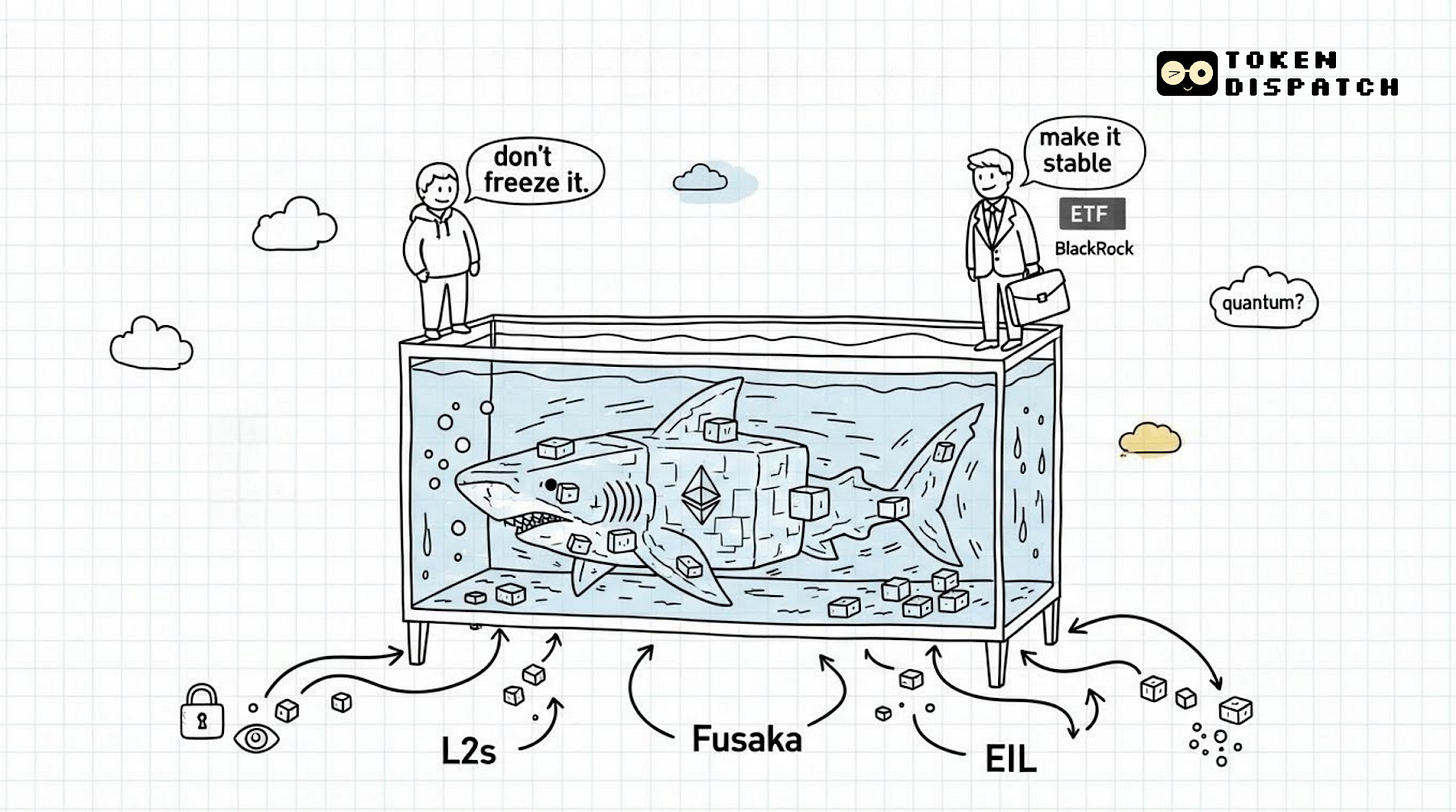 So can Ethereum pull this off? Can it ossify the base layer while the L2s keep moving? Can it satisfy BlackRock and the cypherpunks? Can it harden its cryptography before quantum computers arrive? Can it make privacy default without alienating institutions?