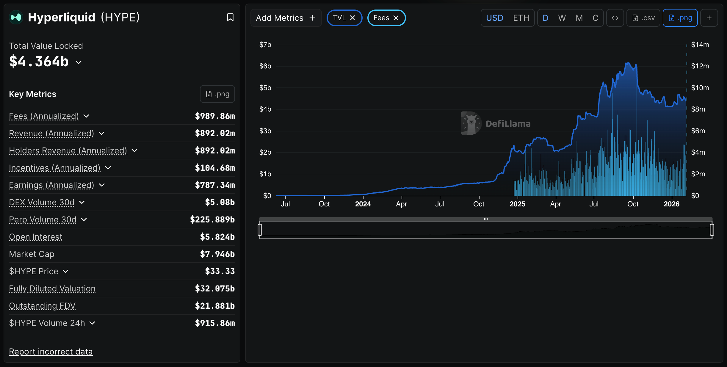 $4.5 billion in TVL. $887 million in annualised revenue. That’s 160x what dYdX (the previous leader in decentralised perps) generates.