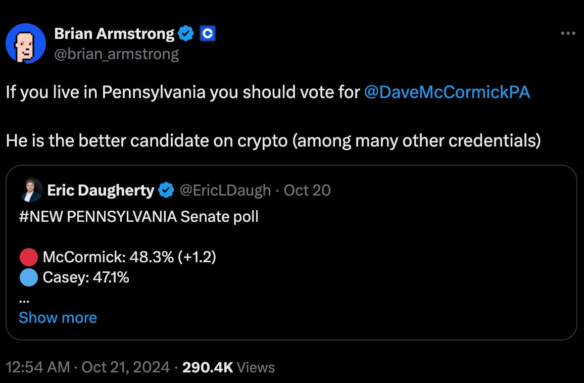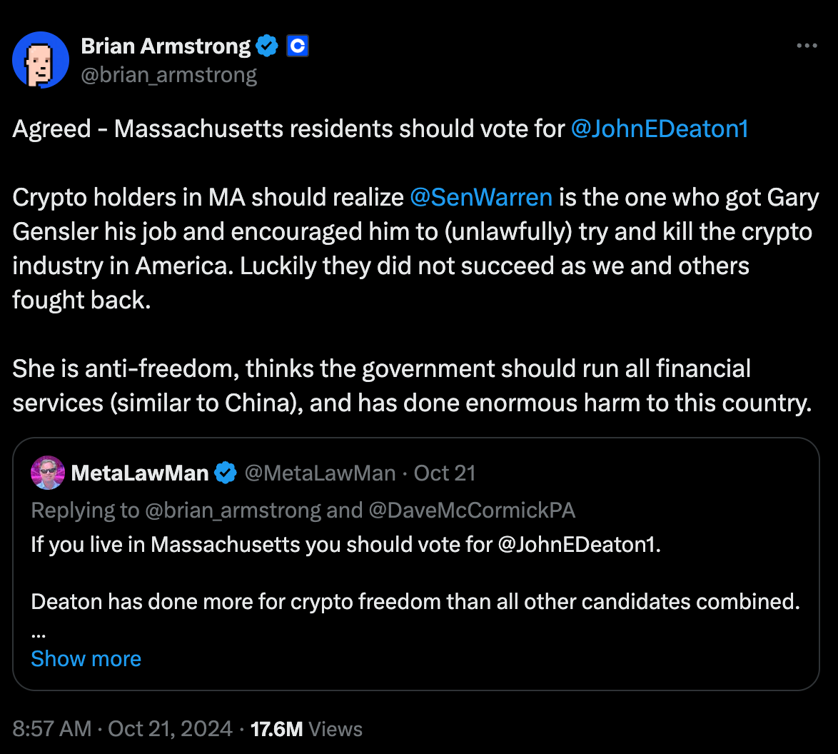 Itβs great to see heavyweights like Coinbase getting involved in politics, but we need to be careful about making crypto too politicized. The technology should be neutral, not tied to any political party. Letβs hope this doesnβt alienate parts of the population that could otherwise support cryptoβs growth.