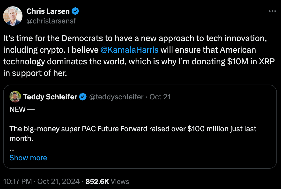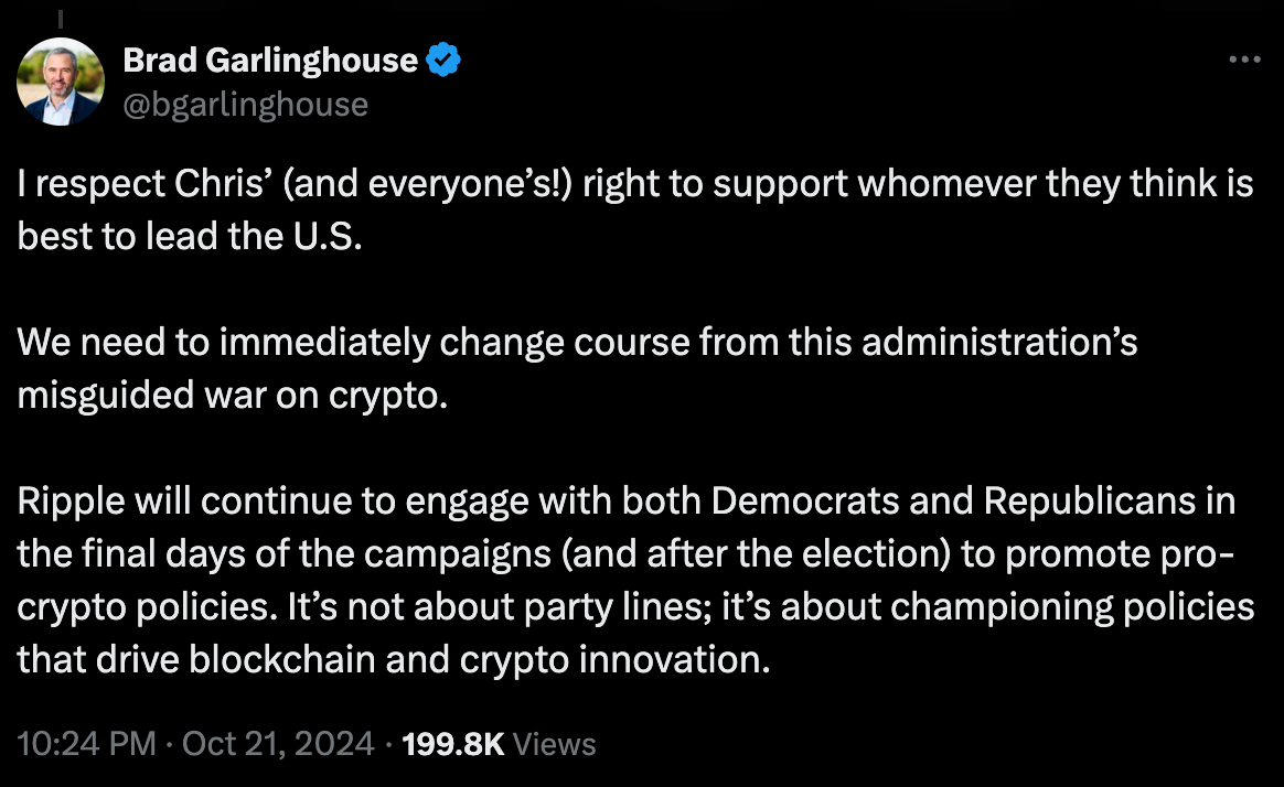 Brad Garlinghouse keeps it diplomatic: "Ripple will continue to engage with both Democrats and Republicans."