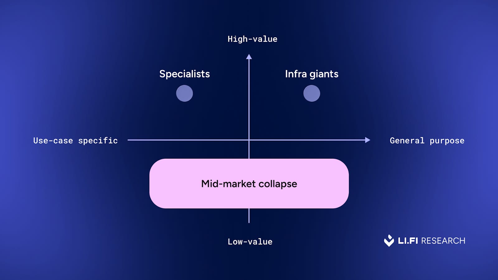 As categories mature, value stops accumulating in the middle. It concentrates on the edges. You either become exceptional at one specific job or you operate at a scale that makes you unavoidable. Everything in between gets squeezed.
