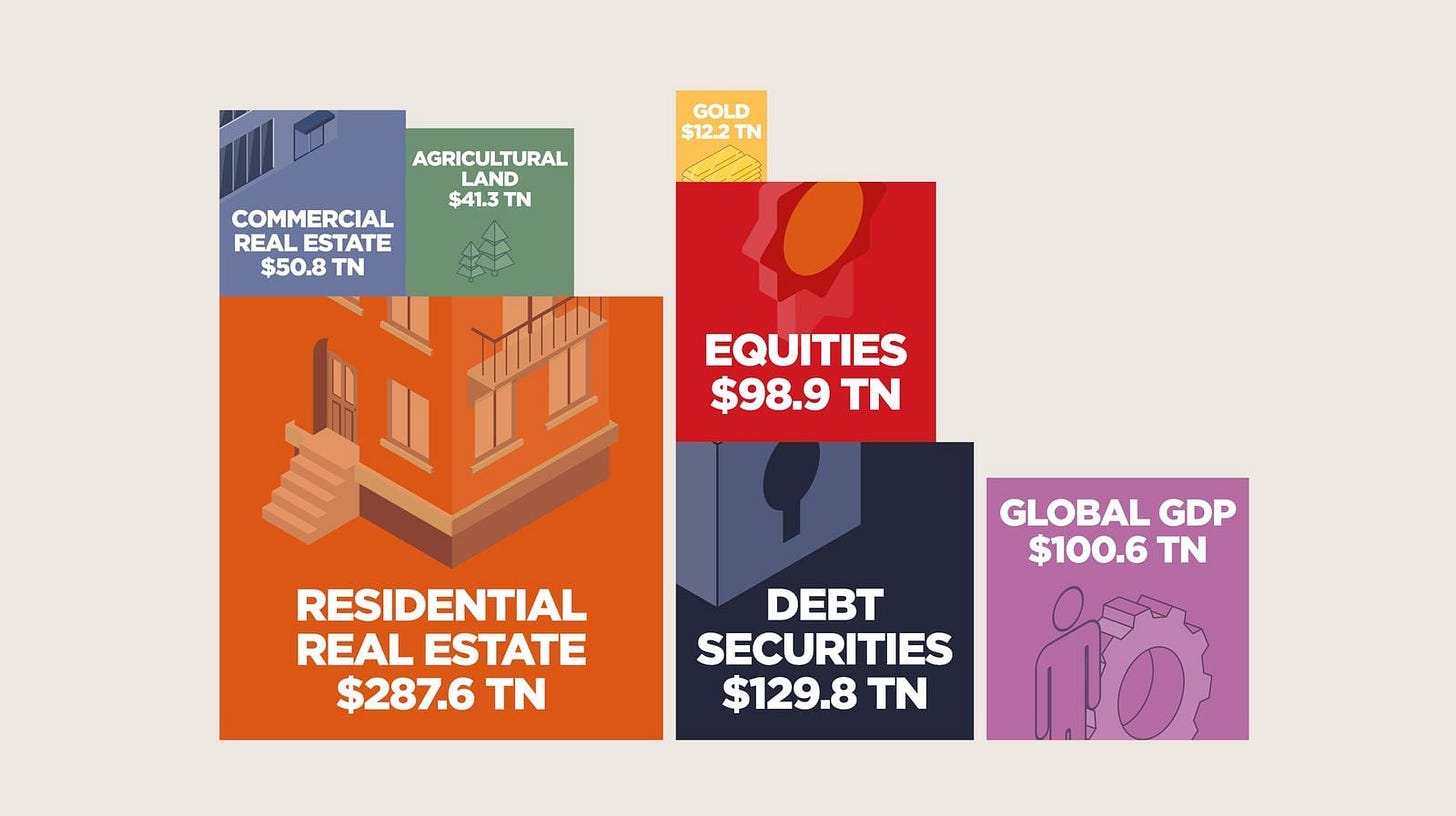 The story isn’t as different in the rest of the world. The real estate market cap today stands at $370 trillion, while the equity market is much smaller.