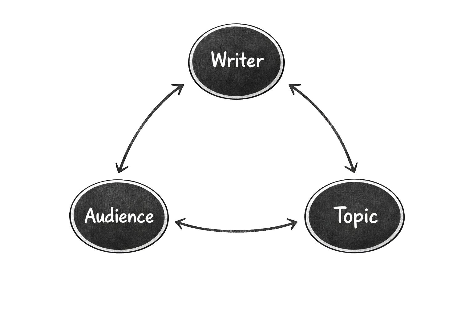 If I write an essay, there are three variables in that process: myself as the writer, my audience, and the essay topic. Also, each of these variables is constantly changing.